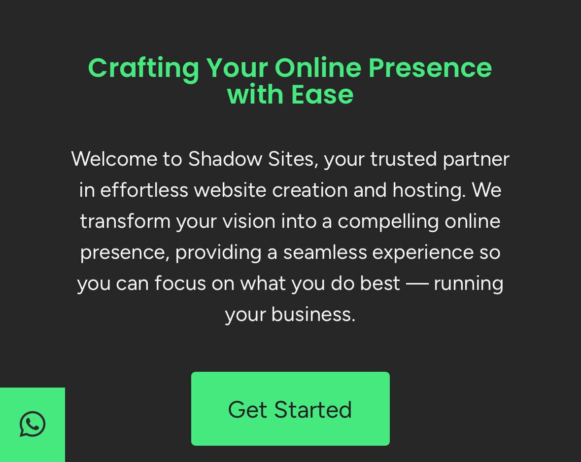 Welcome to Shadow Sites, your trusted partner in effortless website creation and hosting. We transform your vision into a compelling online presence, providing a seamless experience so you can focus on what you do best — running your business.